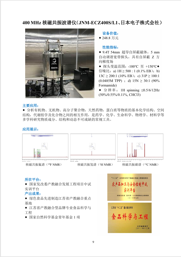 400 MHz 核磁共振波谱仪( JNM-ECZ400SL1、日本电子株式会社)