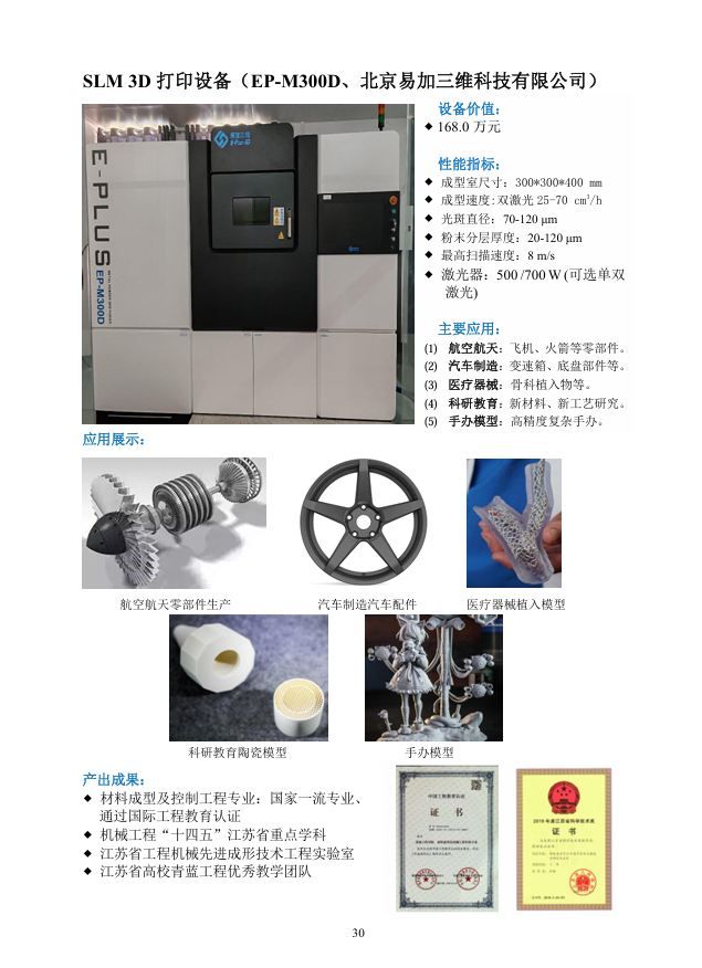 SLM 3D 打印设备(EP-M300D、北京易加三维科技有限公司)